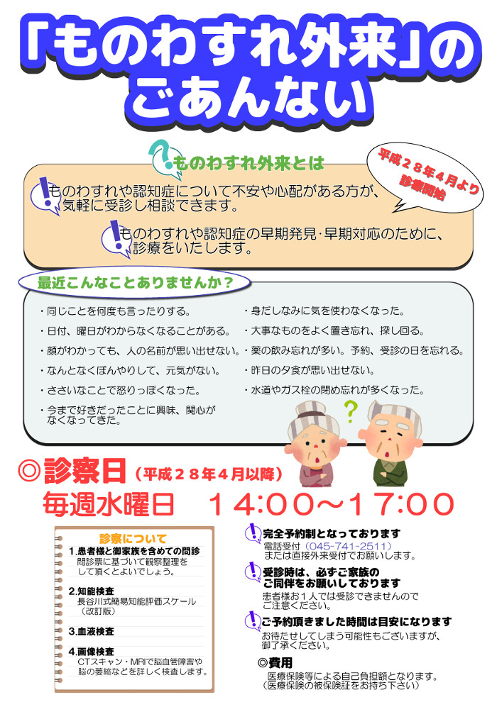 「ものわすれ外来」が4月よりスタートします!